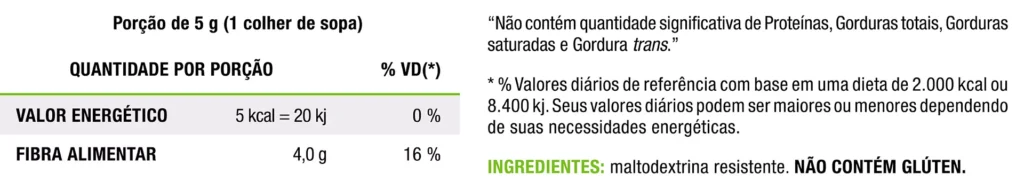 É um produto de origem natural, em pó, fonte de fibra solúvel.