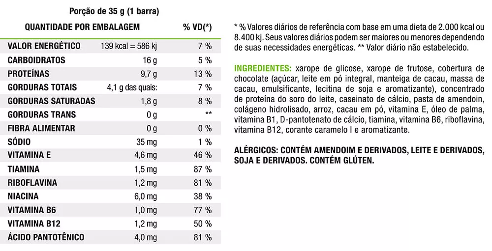 Para consumo nos picos de fome ou quando desejar comer doces na hora do lanche, consumir como lanche saudável, até duas barras por dia com intervalos.