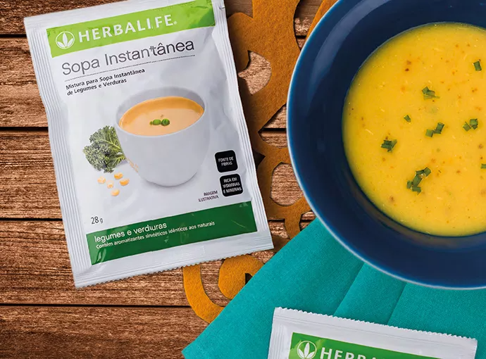 As Sopas Instantâneas Herbalife Nutrition* são uma opção prática e nutritiva para os lanches intermediários ou entradas de refeições principais. Além de cremosas, saborosas e preparadas com uma variedade de ingredientes, são fontes de fibras e ricas em vitaminas e minerais.